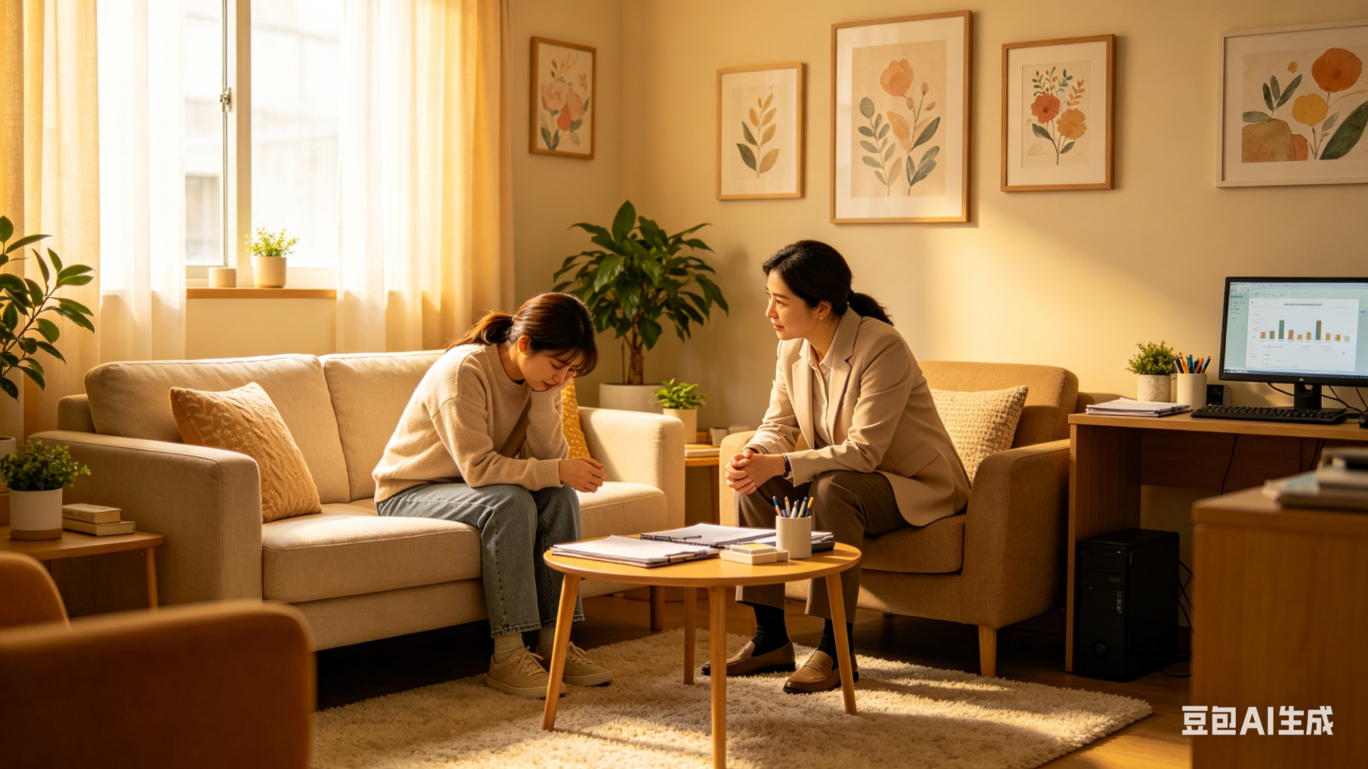 这种安全感来自很多细节:灯光是暖色的而不是惨白的,沙发是可以陷进去而不是硬邦邦的,空气里有淡淡的自然气息而不是消毒水的味道。窗帘能保护隐私,隔音能让人放心说话,甚至连座位摆放的角度——不是面对面像谈判,而是90度角像陪伴——都在传递同一个信息:在这里,你是安全的。