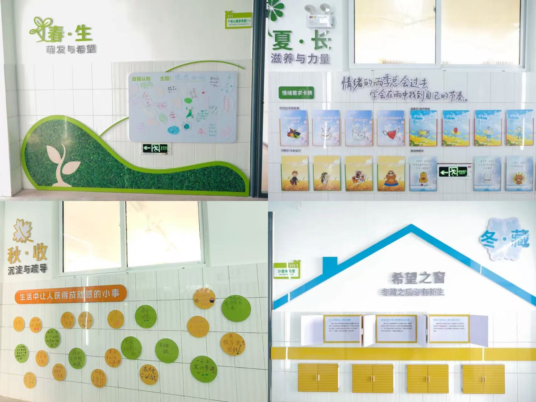 连接各功能室的,是一条别出心裁的“心灵港湾”心理健康文化长廊。它巧妙地将学校的农耕文化底蕴与心理成长意象融合,打造出一个“可视、可感、可参与、可治愈”的实体空间。