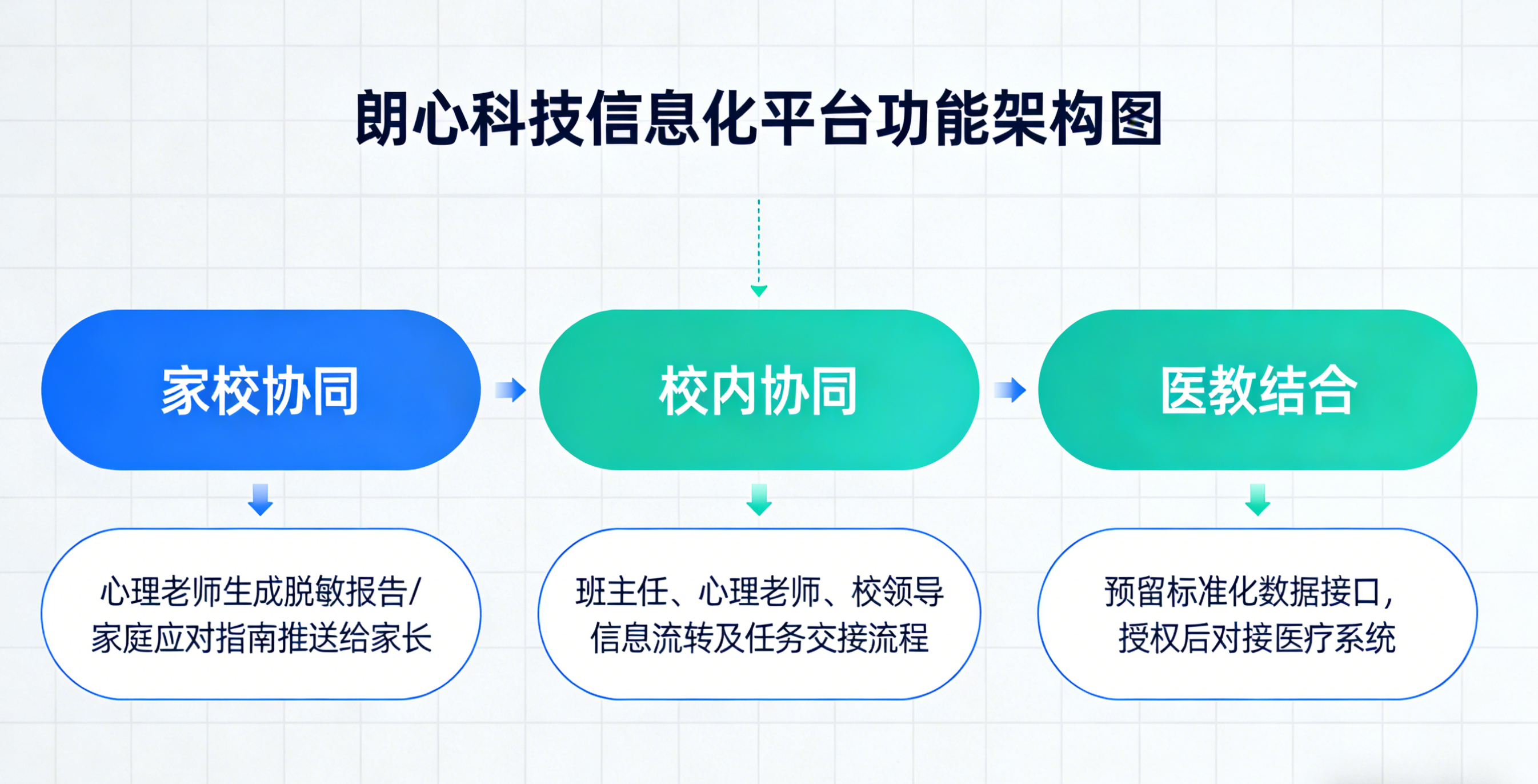 医教结合:平台架构设计预留标准化数据接口。未来,经授权后,学校可将结构化心理档案对接到合作医疗系统,为医生精准诊断提供参考,打通从学校预警到专业诊疗的 “最后一公里”。